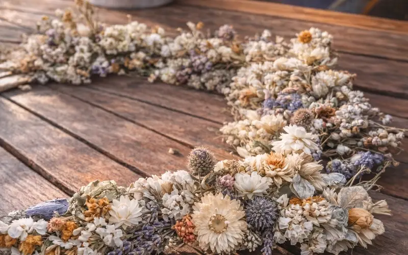Gönn dir deine kreative Auszeit vom Alltag und gestalte in entspannter Runde deinen ganz persönlichen Trockenblumenkranz.